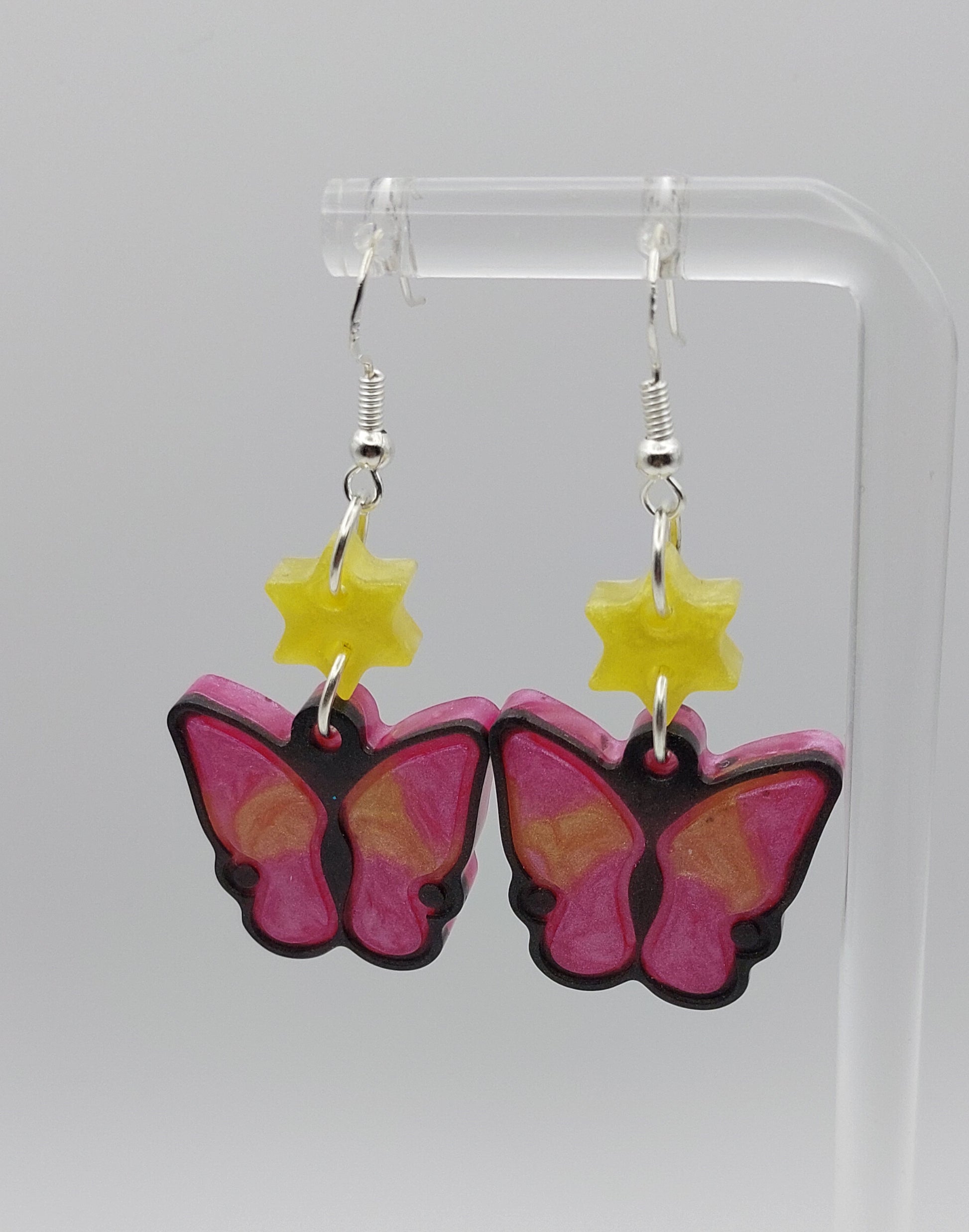 Artsy Flutters Collection – Playful and whimsical, these handmade earrings pair shimmering butterfly wings with bold crescent moons for a dreamy, artsy vibe. Lightweight and eye-catching, they’re perfect for adding a touch of celestial charm to any outfit. Approx 2.25 inches.