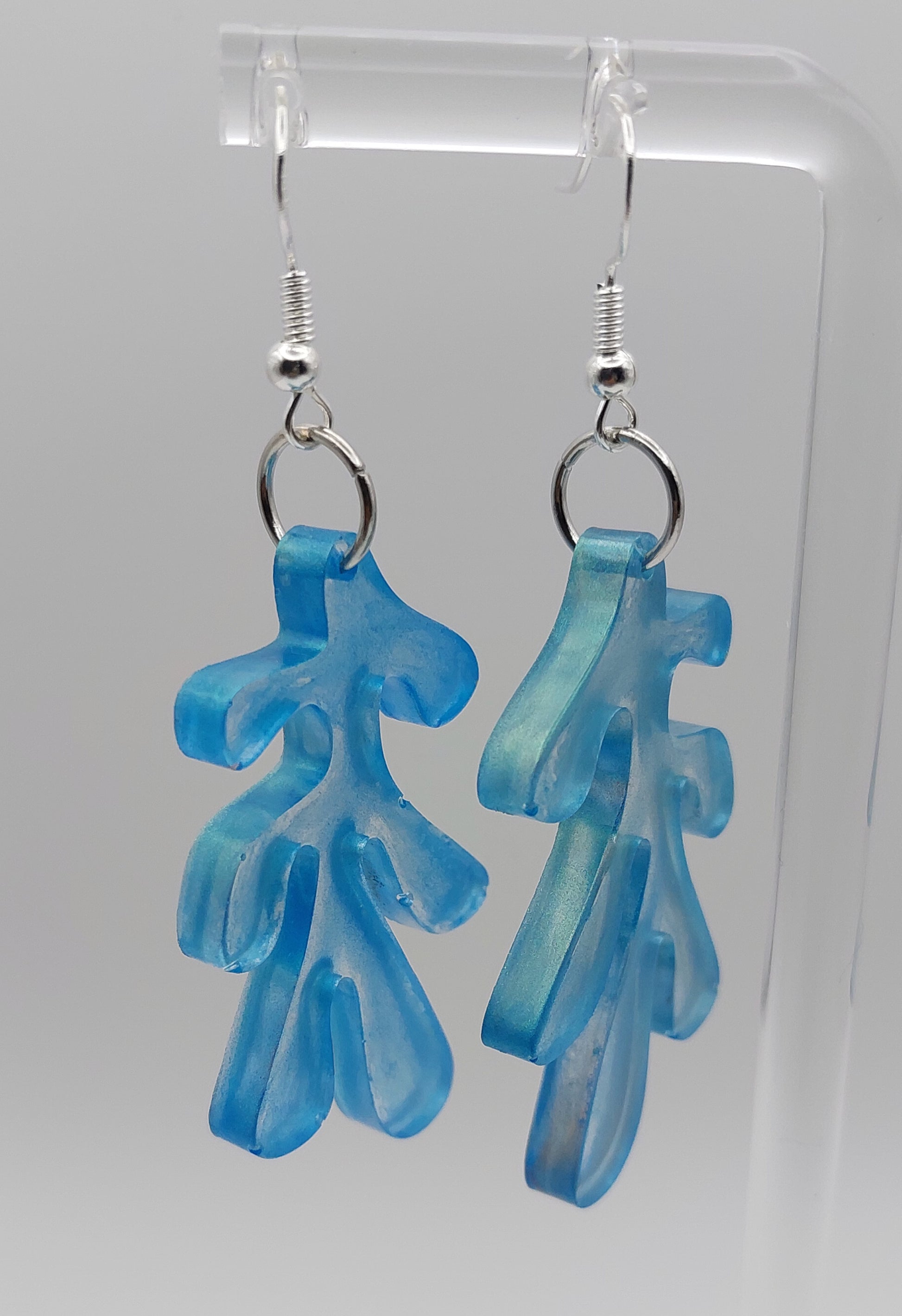 These lightweight resin beauties feature a soft, seafoam blue translucent finish, inspired by sunlit coral reefs and beachside treasures. Their organic coral shape brings coastal vibes with a modern twist—perfect for breezy outfits or bold, beachy statements.