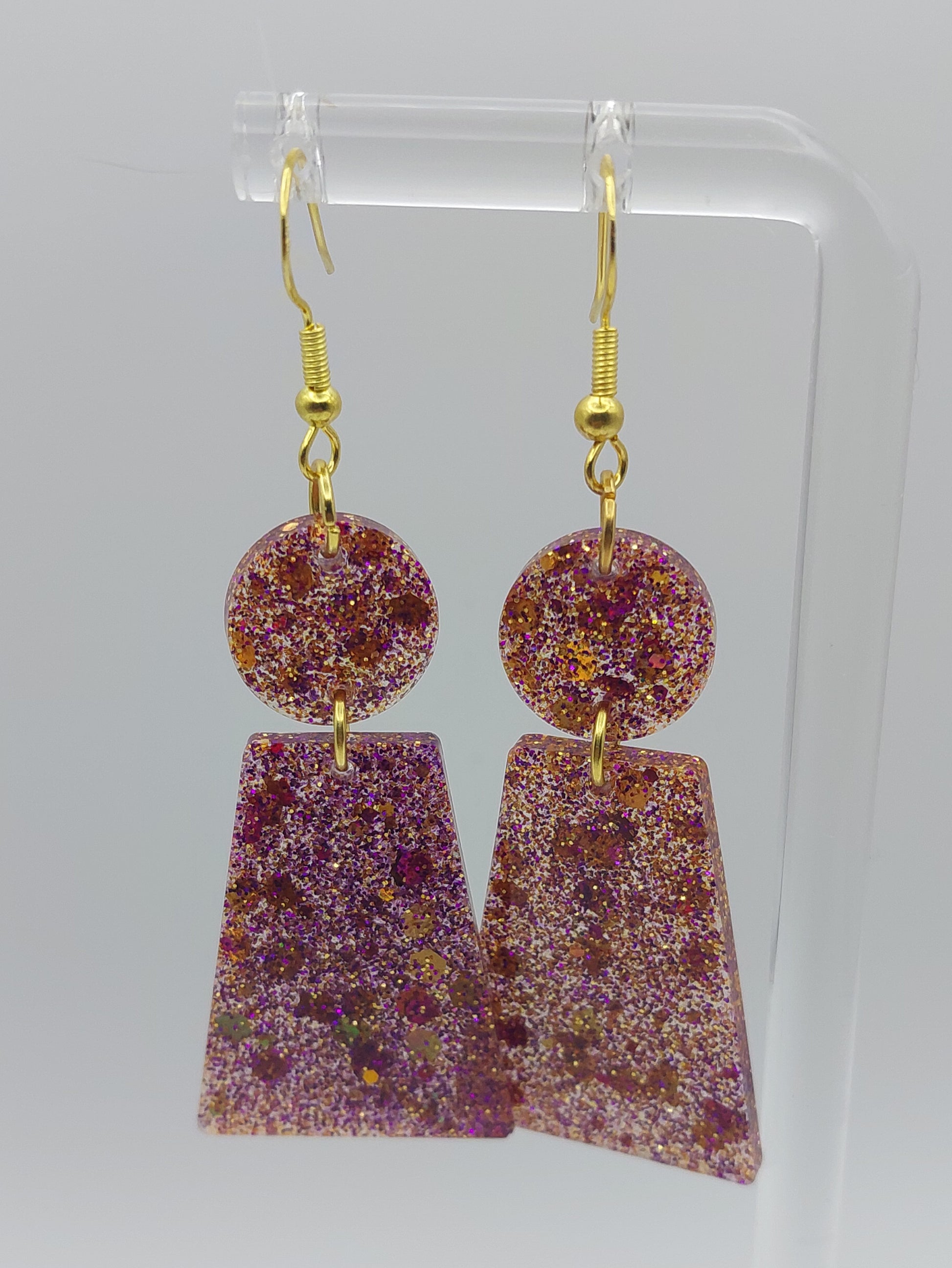 Purple, red, brown, pink glitter in a upside down exclamation mark design. Lightweight.