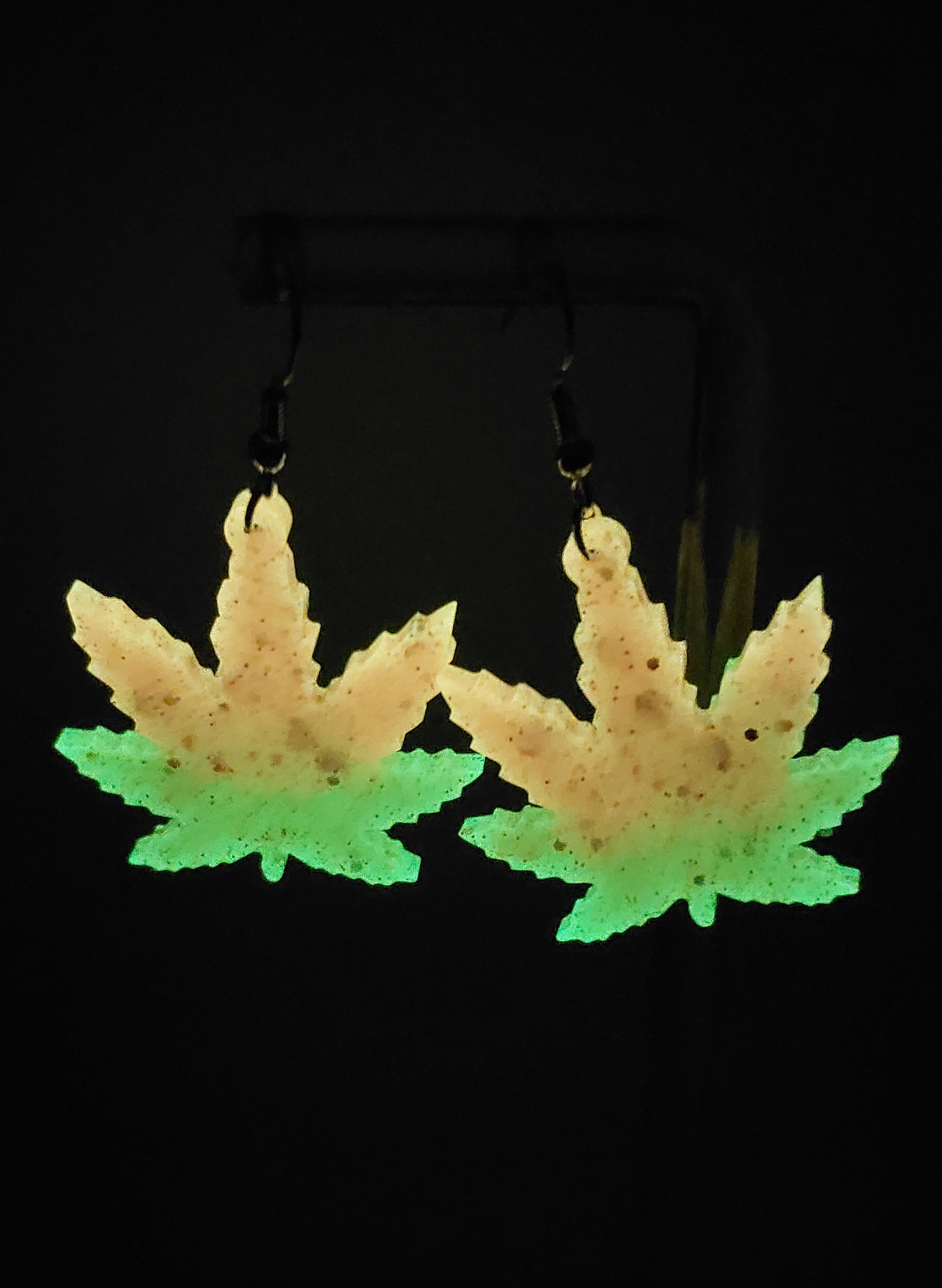 Orange and yellow glitter in Mary J design. Glow in the dark. Lightweight.
