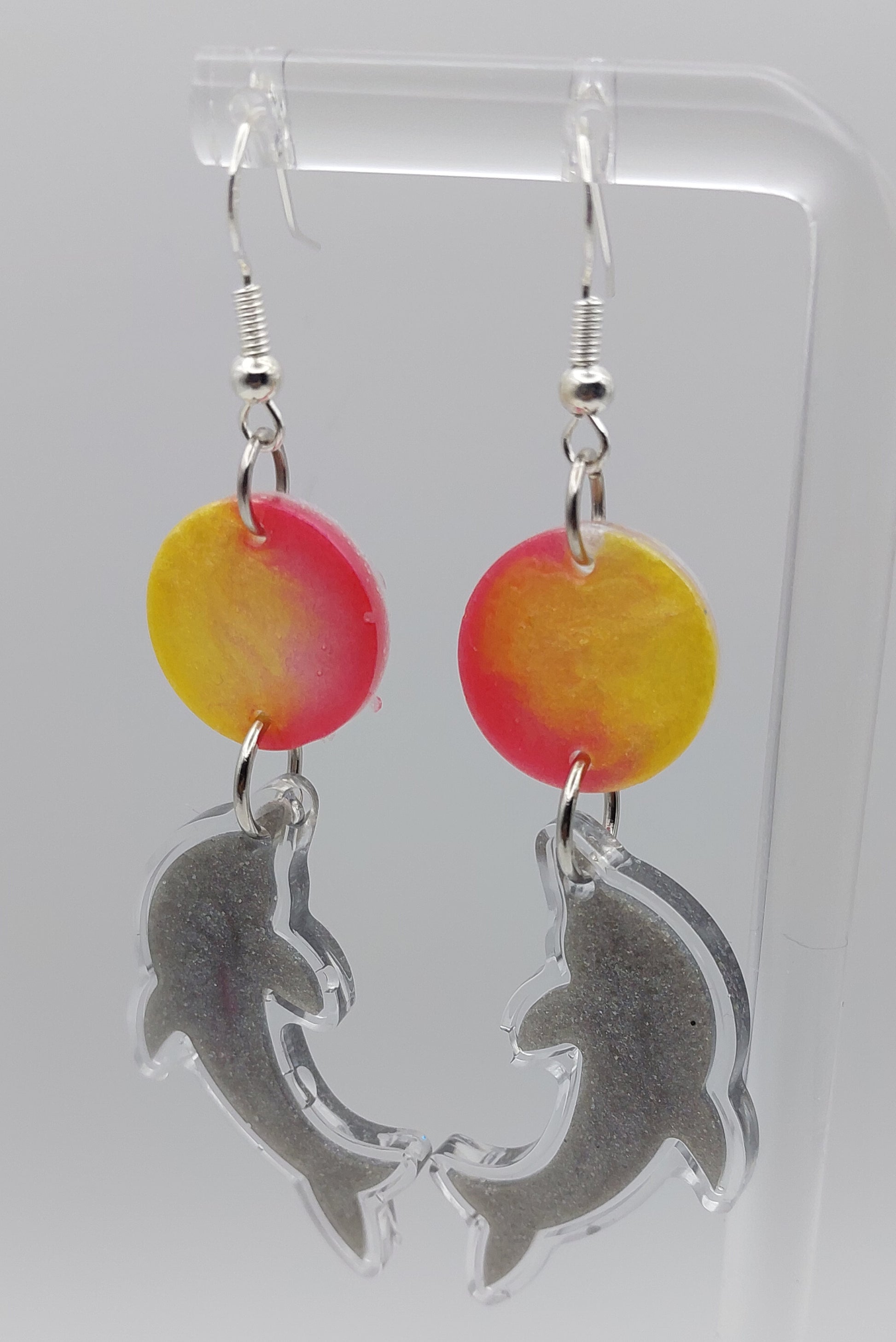 These cute dolphins are playing with abstract beach balls. Cute and playful vibe to any outfit. Lightweight.
