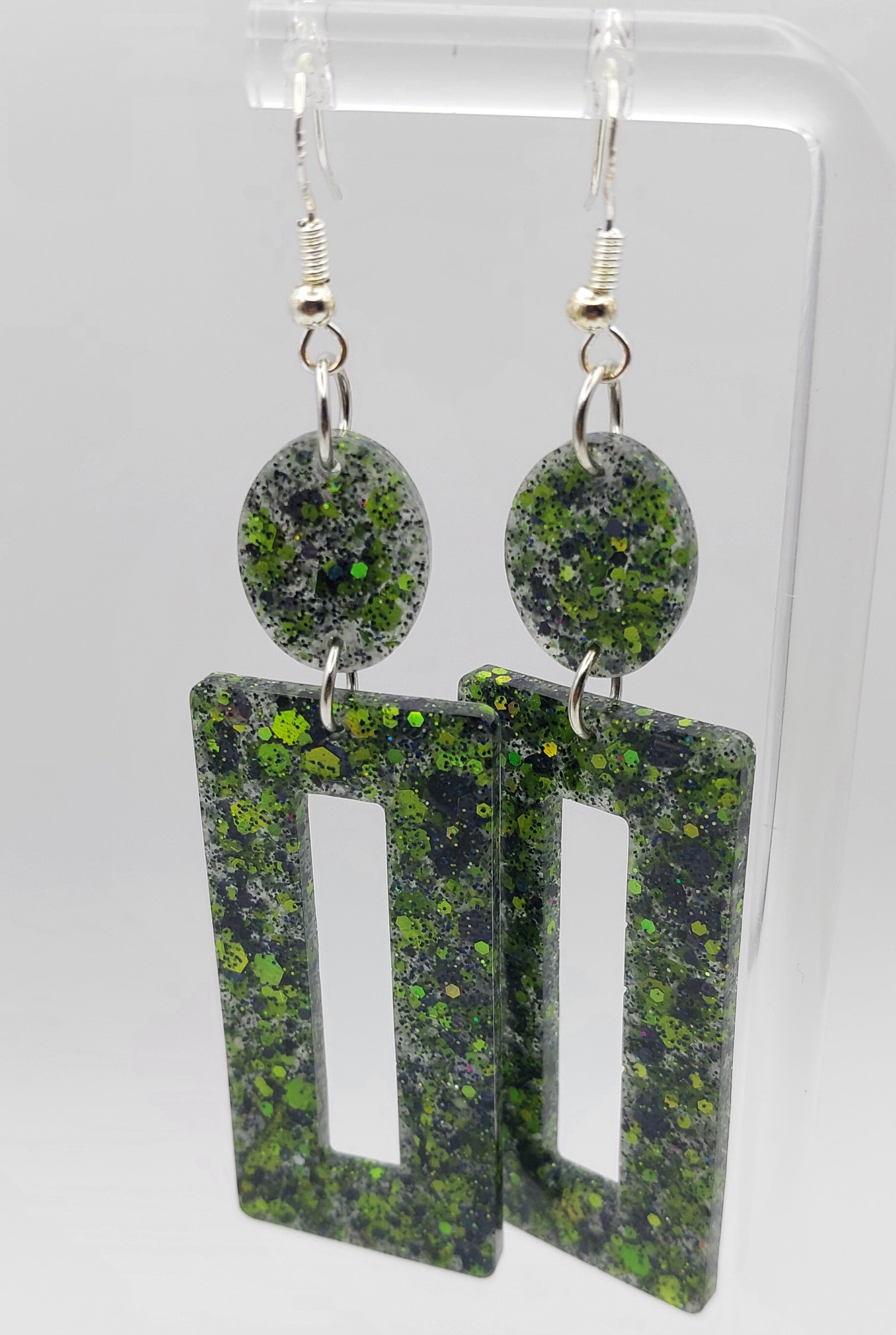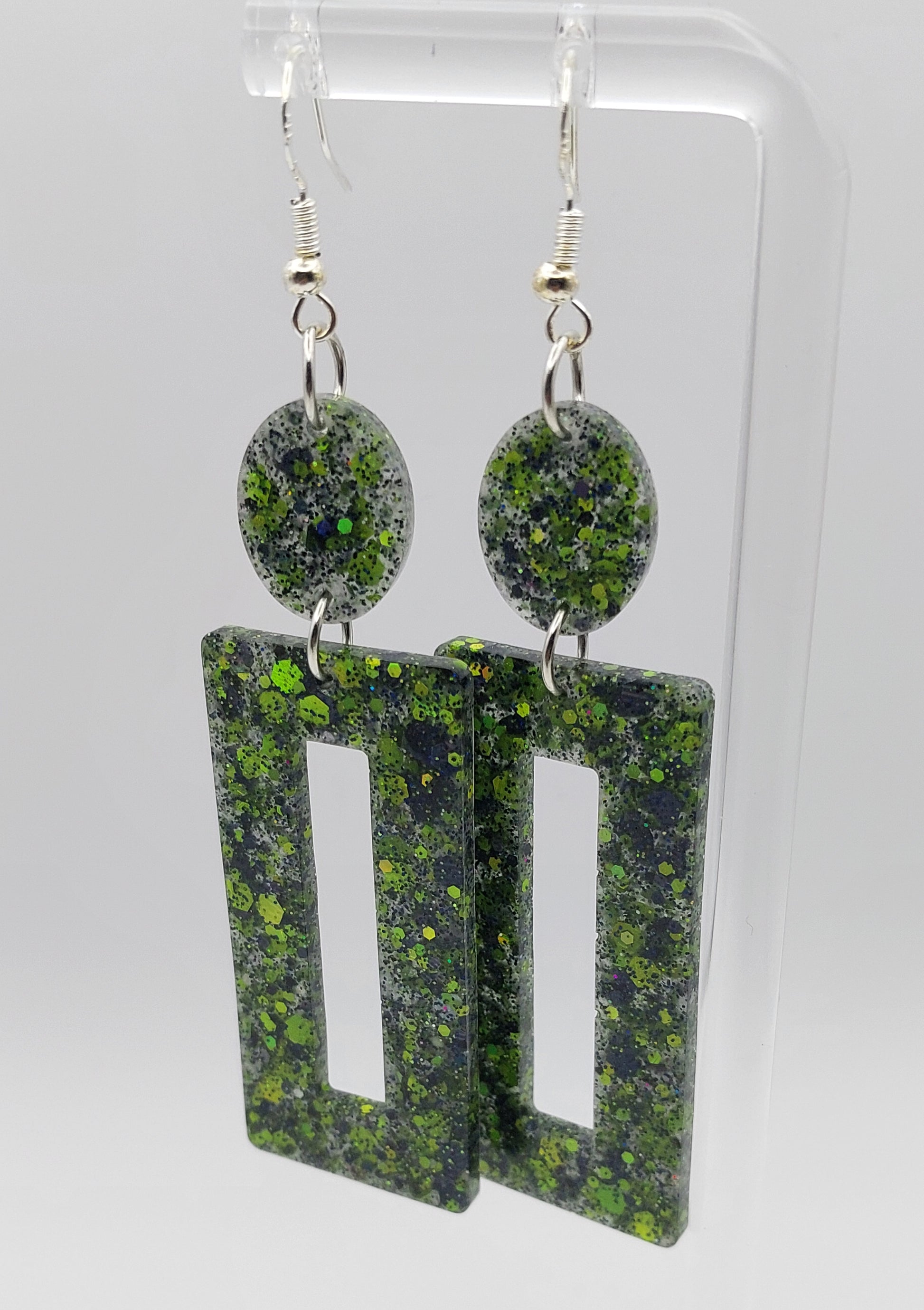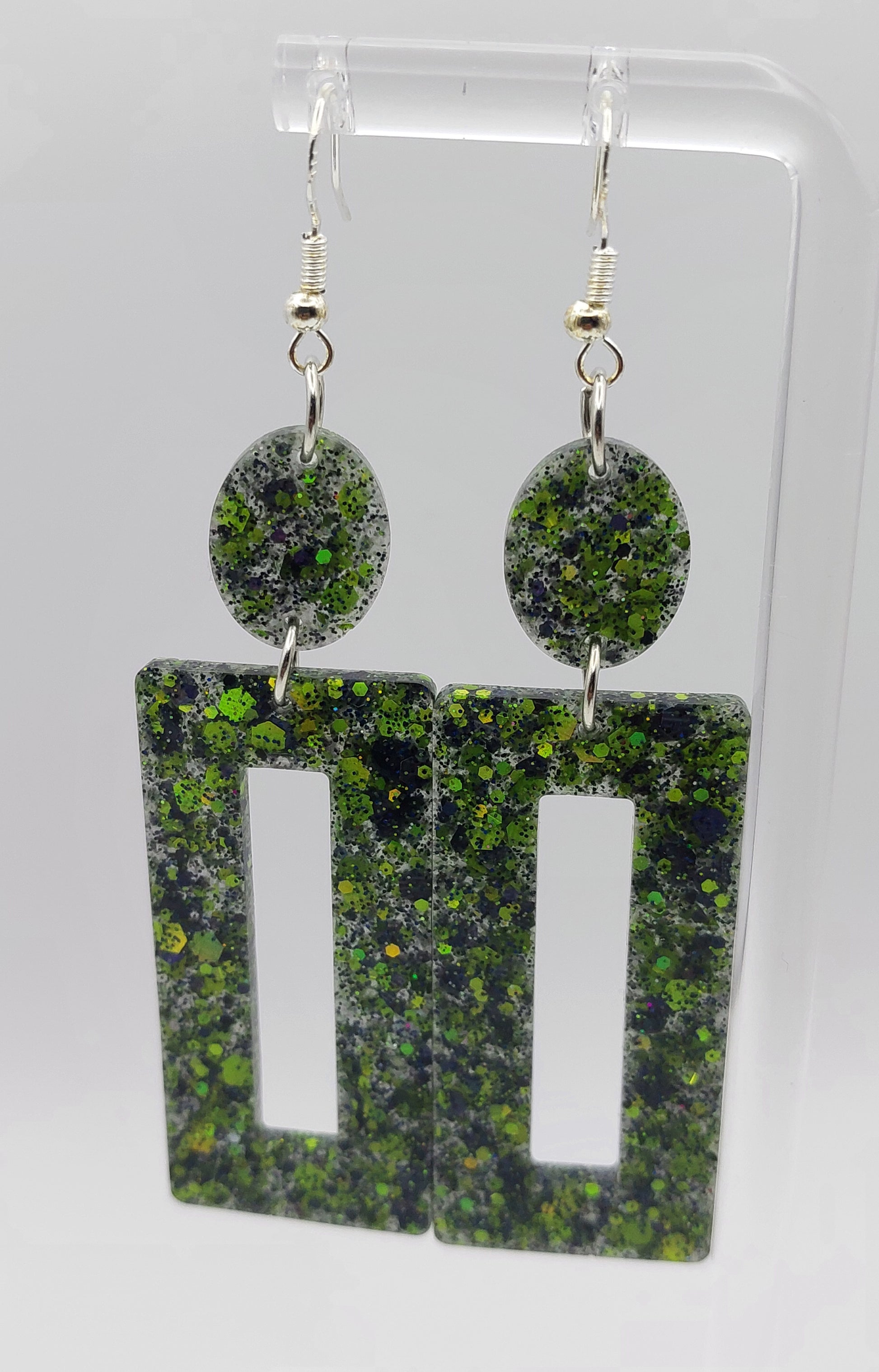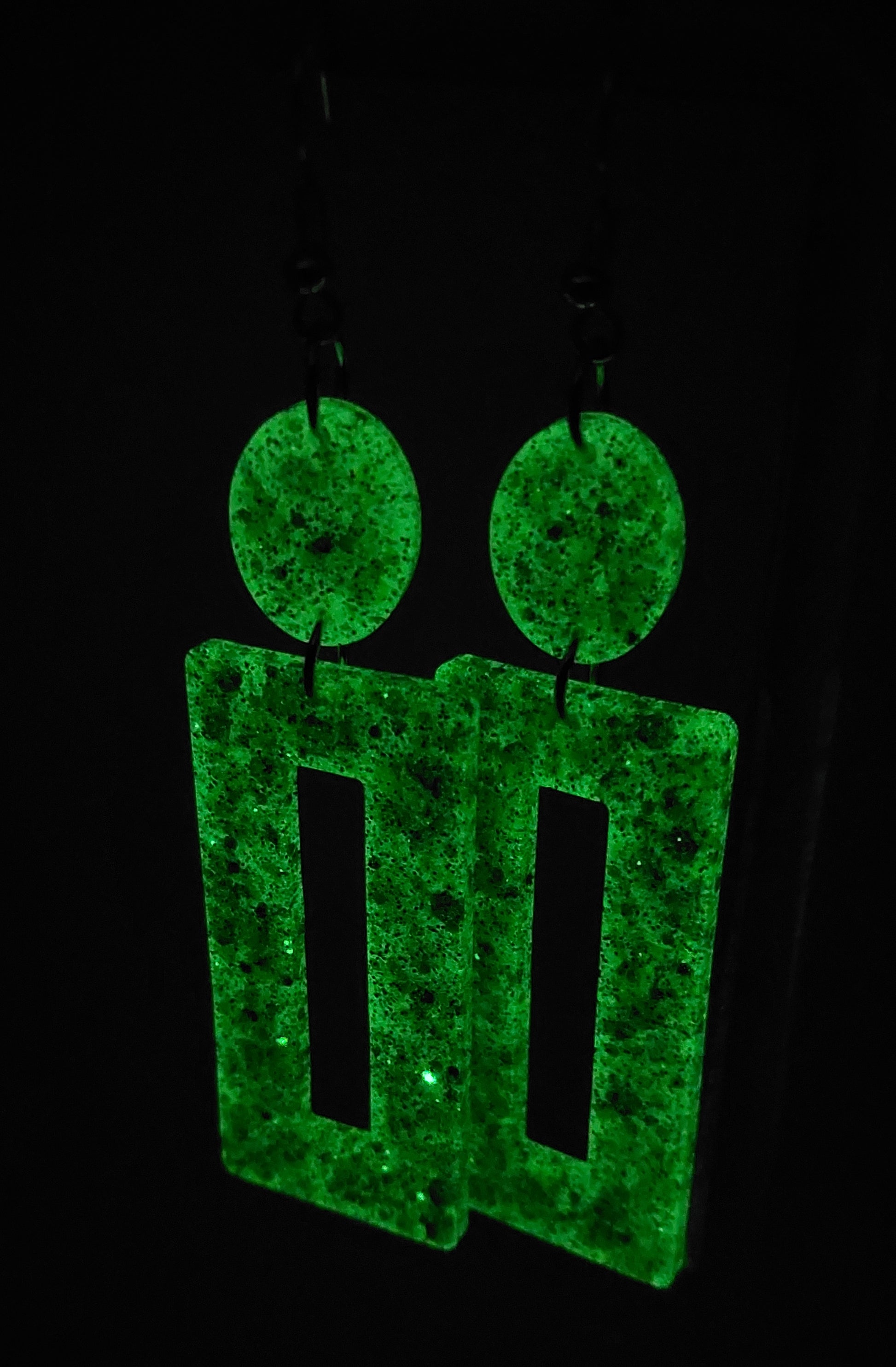 Green black speckled pattern in a larger rectangle drop with topper. Lightweight and Glow-in-the-dark.