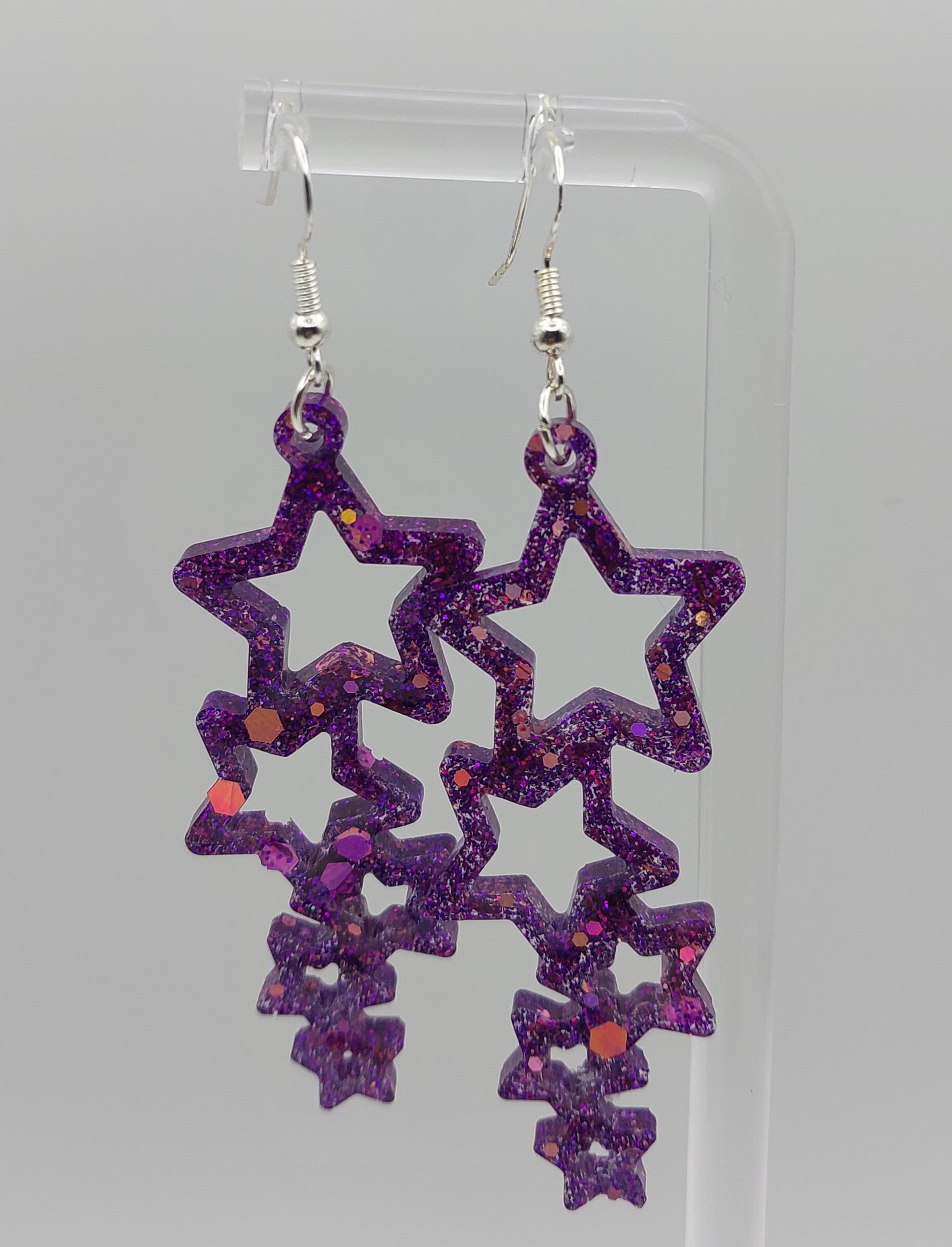 Purple glitter with a hint of pink chunky glitter stacked Stars design. Lightweight.